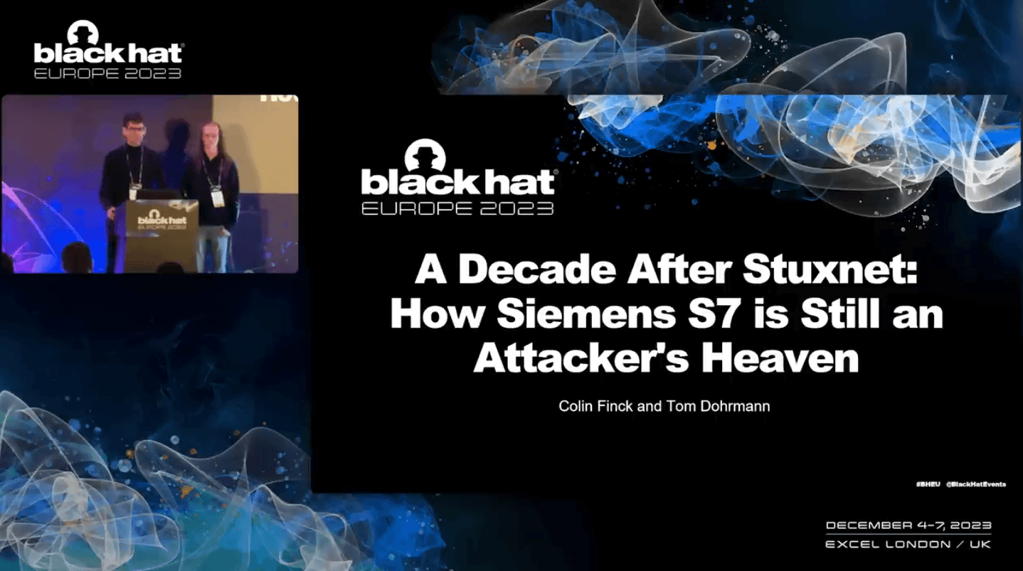 Tom Dohrmann and me have been researching Siemens PLCs at ENLYZE for the past 5 years and presented some of our findings at last year’s Black Hat Europe 2023. A few weeks ago, the recording has been released to the general public, so we can now finally write about it.